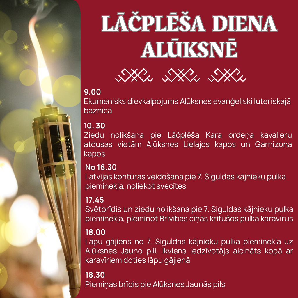 11. novembrī Lāčplēša diena Alūksnē: 9.00 Ekumenisks dievkalpojums Alūksnes evaņģēliski luteriskajā baznīcā; 10.30 Ziedu nolikšana pie Lāčplēša Kara ordeņa kavalieru atdusas vietām Alūksnes Lielajos kapos un Garnizona kapos; no 16.30 […]