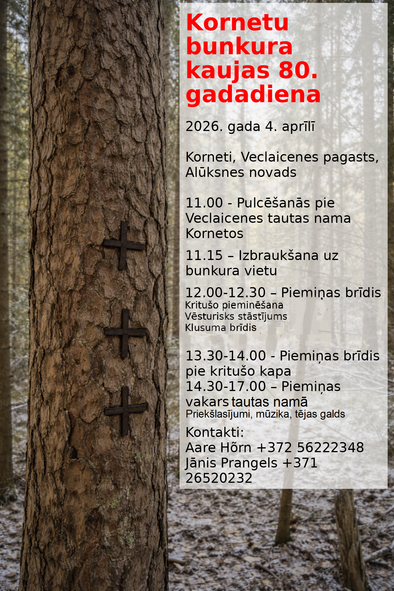 Pie Veclaicenes tautas nama pulcēšanās izbraukšanai uz pasākumu "Kornetu bunkura kaujas 80. piemiņas diena", lai saglabātu Igaunijas un Latvijas tautu kopīgo vēsturisko atmiņu un godinātu 1946. gadā 3. aprīlī kritušos […]
