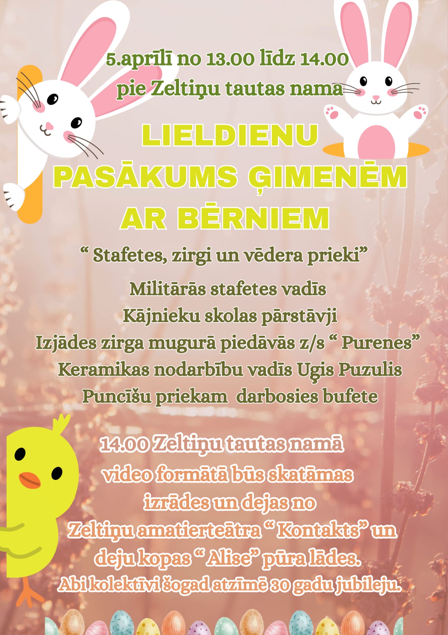 13.00 pie Zeltiņu tautas nama Lieldienu pasākums ģimenēm ar bērniem “Stafetes, zirgi un vēdera prieki”. Militārās stafetes vadīs Kājnieku skolas pārstāvji. Izjādes zirga mugurā piedāvās z/s “Purenes”. Keramikas nodarbību vadīs […] |