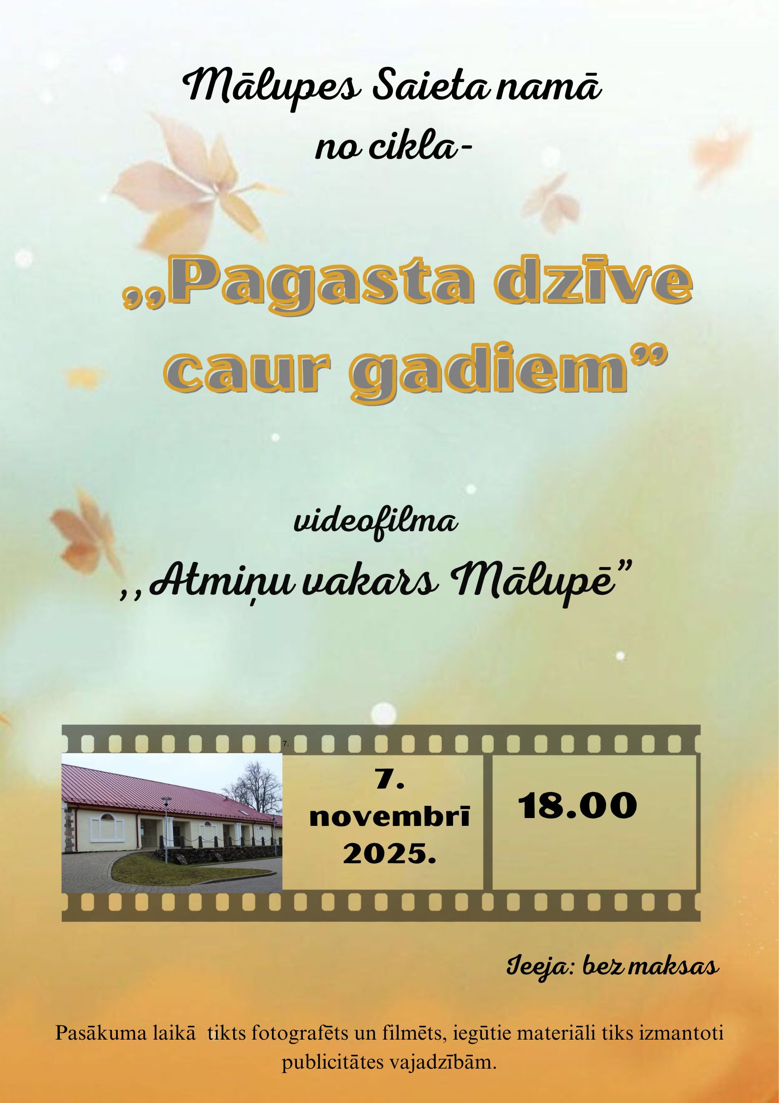 Mālupes Saieta namā videofilma “Atmiņu vakars Mālupē” no cikla “Pagasta dzīve caur gadiem”.