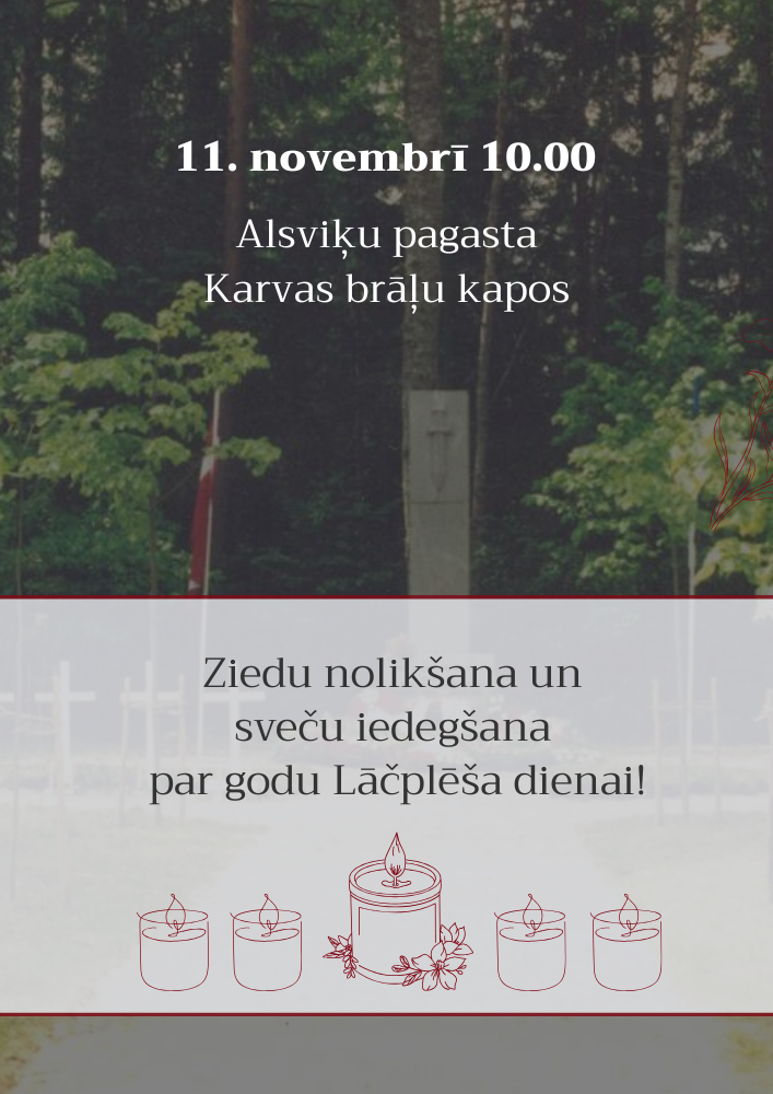 Alsviķu pagasta Karvas Brāļu kapos ziedu nolikšana un sveču iedegšana par godu Lāčplēša dienai.