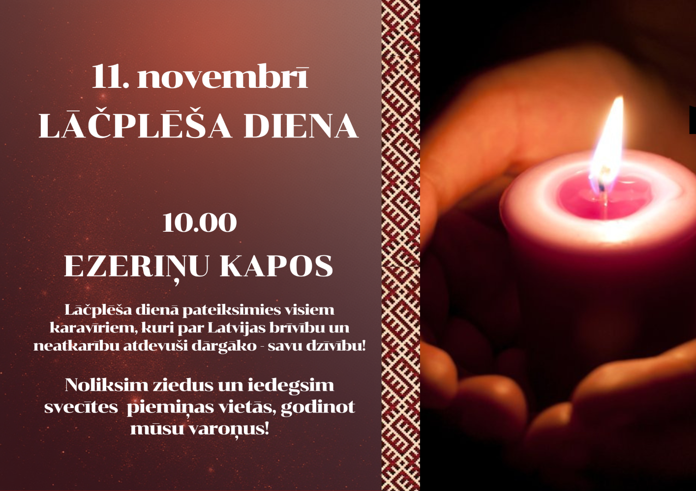 11. novembrī 10.00 Ezeriņu kapos ziedu nolikšana un svecīšu iedegšana, godinot Lāčplēša Kara ordeņa kavalierus.