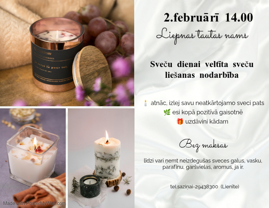 No 2.-28. februārim Alsviķu kultūras nama mazajā zālē Lāsmas Kaupužas veidoto sveču izstāde “Tik dažāda gaisma …”.