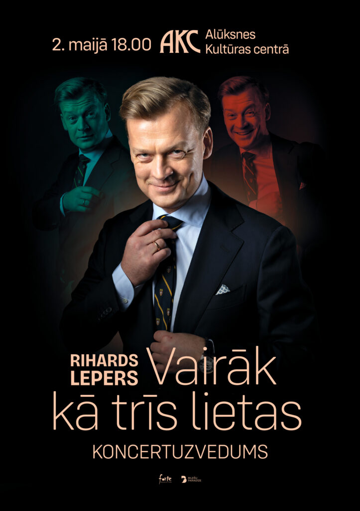 Lieliskais kino un teātra dziedošais aktieris Rihards Lepers jau šajā pavasarī dosies pie saviem talanta cienītājiem ar koncertuzvedumu “Vairāk kā trīs lietas”. Riharda pirmās solo programmas ietvaros tautā iemīļotais aktieris liks lietā savu samtaino baritona balsi, lai koncerta apmeklētājus aizvestu sev tuvā dziesmu un dzejas pasaulē.